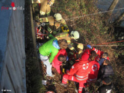 Die schwer verletzte Person kam anschließend im Böschungsbereich der Mur zum Erliegen. Nach der Erstversorgung durch das ÖRK wurde die Person von der Berufsfeuerwehr mit einem Rettungsbrett aus dem unwegsamen Gelände gerettet und dem bereits anwesenden Notarzt-Team zur weiteren Versorgung übergeben.