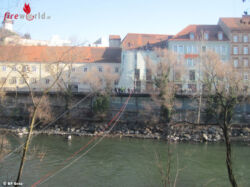 GRAZ (STMK): Die Berufsfeuerwehr Graz wurde um 11:05 Uhr des 19. Dezember 2015 zu einer Menschenrettung zum Lendkai, Höhe Kunsthaus, alarmiert. Aus bisher ungeklärter Ursache prallte eine Frau im Auslaufbereich einer über die Mur gespannten Guerilla Rutsche gegen die Kaimauer.