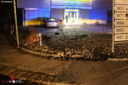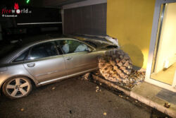 WELS (OÖ): Ein Pkw krachte in den frühen Morgenstunden des 20. Dezember 2015 in Wels-Pernau gegen ein Bürogebäude. Er flüchtete von der Unfallstelle.