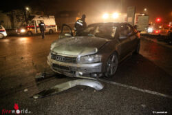 Der bislang unbekannte Lenker eines noblen Audis verlor im Kreuzungsbereich der Wiesenstraße mit der Gaswerkstraße im Welser Stadtteil Pernau die Kontrolle über sein Fahrzeug, raste über einen Parkplatz und krachte gegen das Bürogebäude einer Spedition. Der Lenker machte sich direkt nach dem Crash aus dem Staub. Die Feuerwehr wurde zu dem Einsatz gerufen und führte die Fahrzeugbergung durch. Sowohl Fahrzeug als auch das Bürogebäude wurden erheblich beschädigt. Verantwortliche der Firma führten noch in der Nacht erste Sicherungsmaßnahmen durch. Das Fahrzeug wurde von einem Abschleppunternehmen abtransportiert. Die Polizei nahm die Ermittlungen auf.