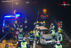 Dabei wurde ein Spineboard zwischen Fahrersitz und Verletzter geschoben. So konnten die Einsatzkräfte die Dame aus ihrer misslichen Lage befreien und anschließend ins Krankenhaus Mödling bringen. Da die Dame angab, einen Hund mitgeführt zu haben, wurde eine Suchaktion mittels Wärmebildkamera eingeleitet. Der Grünstreifen neben der Südautobahn wurde ausführlich abgesucht, jedoch konnte der Hund nicht gefunden werden. Nach Freigabe der Unfallstelle durch die Polizei wurden beide Fahrzeuge mit dem Abschleppfahrzeug von der Autobahn verbracht.