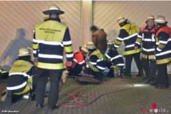 Das Tor stoppte dabei allerdings nicht und klemmte dadurch das Bein zwischen einer Säule und dem Garagentor ein. Einsatzkräfte der Feuerwehr setzten zur Entlastung zu erst einen Holzkeil ein und drückten anschließend mit Hebekissen das Garagentor zur Seite, um den Eingeklemmten zur befreien. Die Besatzung eines Notarztwagens sowie eines Rettungswagens der Berufsfeuerwehr versorgten den Verunfallten an der Einsatzstelle und transportierten ihn anschließend in eine Münchner Klinik zur weiteren Behandlung.