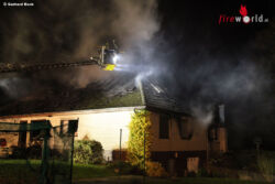 Beim Eintreffen der Feuerwehr schlugen bereits Flammen aus dem Dach. Die umliegenden Gebäude konnten gegen ein Übergreifen der Flammen geschützt werden. Unter schwerem Atemschutz wurde das Feuer im Innenangriff und über eine Drehleiter bekämpft. Ein Totalschaden des Bungalows konnte jedoch nicht vermieden werden.