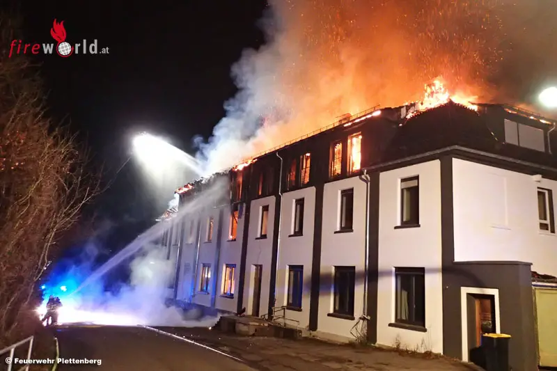 Deutschland: Großbrand eines älteren, mehrgeschossigen Betriebes in Plettenberg