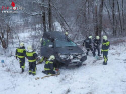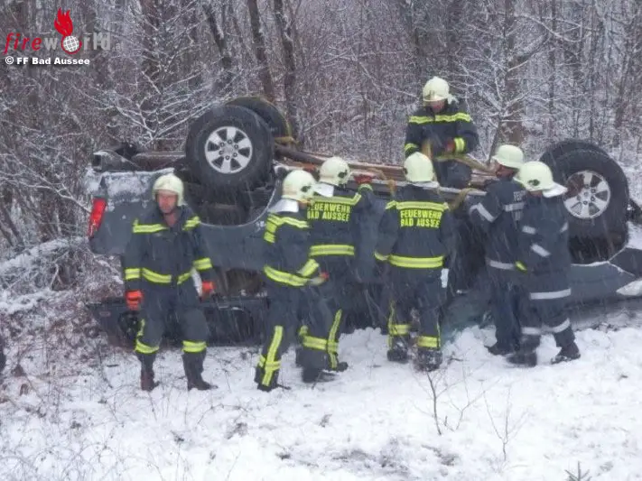 BAD AUSSEE (STMK): Vermutlich durch falsch eingeschätzte Straßenverhältnisse kam am 4. Jänner 2016 gegen 16 Uhr ein ausländischer Pkw-Lenker auf der B145 von der Straße ab und überschlug sich mehrmals. Dabei wurden die beiden Insassen wie durch ein Wunder nur leicht verletzt.