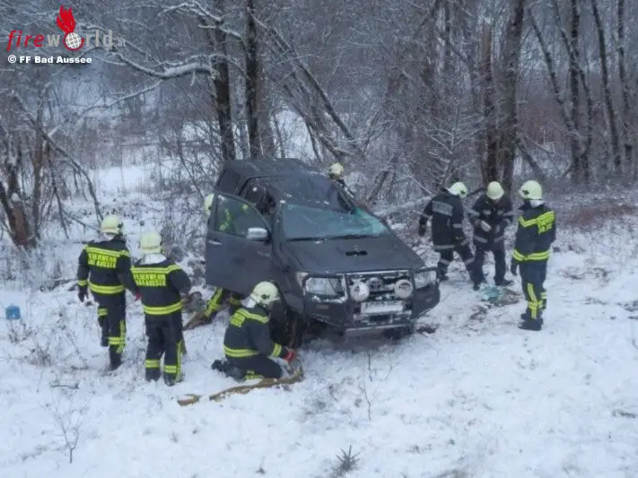 BAD AUSSEE (STMK): Vermutlich durch falsch eingeschätzte Straßenverhältnisse kam am 4. Jänner 2016 gegen 16 Uhr ein ausländischer Pkw-Lenker auf der B145 von der Straße ab und überschlug sich mehrmals. Dabei wurden die beiden Insassen wie durch ein Wunder nur leicht verletzt.
