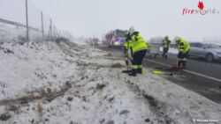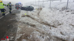 SPIELBERG (STMK): Rund 300 Meter schlitterte ein Pkw am 5. Jänner 2016 gegen 08:30 Uhr auf der S 36 zwischen Fahrbahnrand, Leitschiene und Zaun, bis er schließlich am Pannenstreifen zum Stillstand kam.