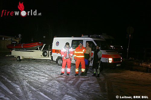 Währenddessen suchten die gegen 19.30 Uhr von der Leitstelle Traunstein alarmierte BRK-Wasserwacht und die Freiwillige Feuerwehr Bad Reichenhall mit mehreren Booten und Fußtrupps den kompletten See ab, was nicht ungefährlich war, da er bereits in einigen Abschnitten zugefroren war. Die aufwendige Suche wurde nach rund einer halben Stunde abgebrochen, als der Anrufer zugab, dass der Notfall erfunden war.
