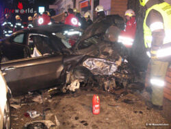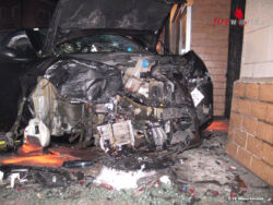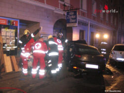 Vor Ort konnte der Einsatzleiter HBI Karl Daxecker folgende Lage feststellen: Ein PKW-Lenker war gegen eine Hausmauer und einen stehenden PKW geprallt. Der Fahrer war in seinem Fahrzeug eingeklemmt und wurde bereits von anwesenden Rettungssanitätern versorgt. Danach musste dieser durch die FF Mauerkirchen unter Einsatz des hydraulischen Rettungsgerätes aus seinem deformierten PKW befreit werden.