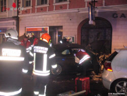 MAUERKIRCHEN (OÖ): Die Feuerwehr Mauerkirchen wurde am 6. Jänner 2016 um 01:04 Uhr von der Landeswarnzentrale zu einem Verkehrsunfall mit eingeklemmter Person am Obermarkt in Mauerkirchen alarmiert.