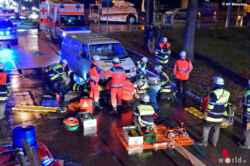 Mit Lufthebekissen wurde das Fahrzeug angehoben, um die Frau rasch zu befreien. Das Notarztteam Bogenhausen und ein Rettungswagen des BRK leiteten umgehend medizinische Maßnahmen ein. Die 73-Jährige kam mit schweren Verletzungen in den Schockraum einer Münchner Klinik. Der Fahrer des T4-Transporters erlitt bei dem Unfall einen Schock. Er wurde von einem Mitarbeiter des Kriseninterventionsteams betreut. Einsatzbeamte des Verkehrsunfallkommandos haben die Arbeit zur Rekonstruktion des Unfallhergangs aufgenommen. Im abendlichen Berufsverkehr kam es im Bereich der Unfallstelle zu Behinderungen.