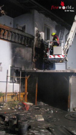 Bei Ankunft am Einsatzort fanden die Einsatzkräfte einen brennenden Anbau vor. Sofort wurde unter schwerem Atemschutz mit den Lösch- und Räumungsarbeiten begonnen. Da der Brand bereits auf die Fassade übergegriffen hatte, wurde ein Teil dieser durch Unterstützung des Hubsteigers geöffnet und mittels Wärmebildkamera kontrolliert. 28 Feuerwehrleute standen bis 20.30 Uhr im Einsatz.