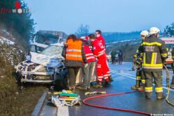 LENGENFELD (NÖ): Zwei Kilometer nach der Abfahrt Dross/Lengenfeld auf der B37 in Fahrtrichtung Gföhl ereignete sich am 7. Jänner 2016 ein schwerer Verkehrsunfall zwischen einem Pkw und einem Lkw. Um 16.28 Uhr wurden die Feuerwehren Stratzing und Lengenfeld von der Bezirksalarmzentrale Krems zur Menschenrettung auf die B37 bei Baukilometer 12,2 alarmiert.