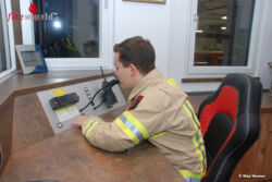 Für eine geordnete Kommunikation beherbergt der neue Funkraum zwei Arbeitsplätze. Diese wurden bewusst an der Außenseite gehalten, um in der Mitte Ablageplatz zu schaffen. Der in der Mitte angeordnete Computer ist somit von beiden Seiten zu erreichen. Für eine effektive Lagedarstellung, beispielsweise für Einsatzbesprechungen des Führungspersonales, steht ein TV – Bildschirm zur Verfügung. Neben den obligatorischen Ablagefächern zur Aufbewahrung von Einsatzmitteln und Büromaterial stehen den Funktionären abschließbare Kästen für deren Unterlagen zur Verfügung.