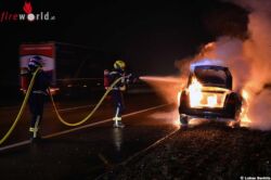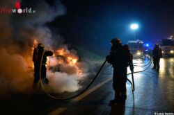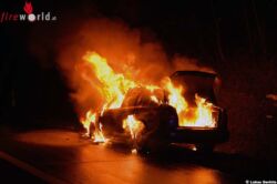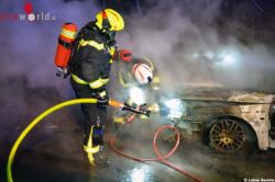 Bereits zum Zeitpunkt der Alarmierung der Feuerwehr um 6.36 Uhr stand der Pkw in Vollbrand – diese Information wurde den ausrückenden Einsatzkräften unverzüglich durch die Bezirksalarmzentrale mitgeteilt. Standardmäßig rüstete sich bereits während der Anfahrt ein Trupp für die Brandbekämpfung unter umluftunabhängigem Atemschutz aus.