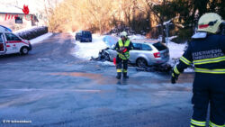 ENGERWITZDORF (OÖ): Drei Personen wurden am Freitagvormittag, 8. Jänner 2016, bei einem Frontalzusammenstoß in Engerwitzdorf auf der Gusental Landesstraße im Bereich Göweilmühle verletzt. Ein 89-jähriger Pensionist geriet aus ungeklärter Ursache ins Schleudern und krachte in den Gegenverkehr.