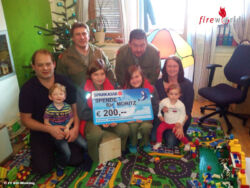 Einen Spendenscheck von €200.- wurde an die Eltern von Moritz übergeben. Die Feuerwehrjugendgruppe Edt-Winkling wünscht Moritz alles Gute für seine Therapie mit den Delfinen.