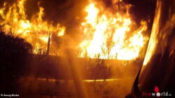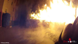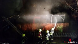 Nö: Müllinsel einer Wohnhausanlage lichterloh in Flammen (+Video Helmkamera)