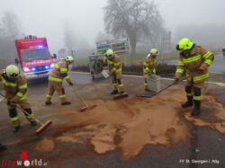 Des weiteren wurde seitens der Feuerwehr durch Verkehrslotzen der Verkehr einspurig an der Unfallstelle vorbeigeleitet, das Abschleppunternehmen bei der Bergung der Unfallfahrzeuge unterstützt, die ausgeflossenen Betriebsmittel gebunden, neutralisiert und anschließend die Verkehrsflächen gereinigt.