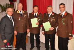 Dieser Anlass wurde jedoch auch dazu genutzt langjährige und engagierte Mitglieder zu Ehren. Herbert Edinger wurde für 40 Jahre, Jakob Pilzek für 50 Jahre verdienstvolle Tätigkeit im Feuerwehrdienst ausgezeichnet. Mit Verdienstzeichen für ihre hervorragende und verdienstvolle Tätigkeit im Feuerwehrwesen wurden Franz Maier (Verdienstzeichen 2. Stufe) und Martin Jezdik (Verdienstzeichen 3. Stufe) ausgezeichnet. Weitere Kameraden sowie der Feuerwehrjugend konnten zu im vergangenen Jahr erworbenen Abzeichen, Dekrete und absolvierten Ausbildungen gratuliert werden. Ein besonderer Dank wurde seitens des Kommandos auch an Karl Brandl übermittelt, der 20 Jahre lang als Festobmann der Feuerwehr das Feldbacher Veranstaltungswesen und auch das Wehrgeschehen mit Rüsthausfest, Krampusmarkt und vielen weiteren Veranstaltungen prägte.