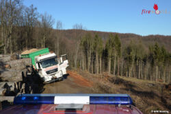 KALTENLEUTGEBEN (NÖ): Ein 26 Tonnen schwerer Lastkraftwagen, beladen mit Hackschnitzel, fuhr am 14. Jänner 2016 im Gelände der Sulzer Höhe. Da es aufgrund der erhöhten Lage in dieser Gegend zu Glatteisbildung kam, konnte der Lenker trotz angelegter Ketten ein Abrutschen von der Forststraße nicht verhindern.