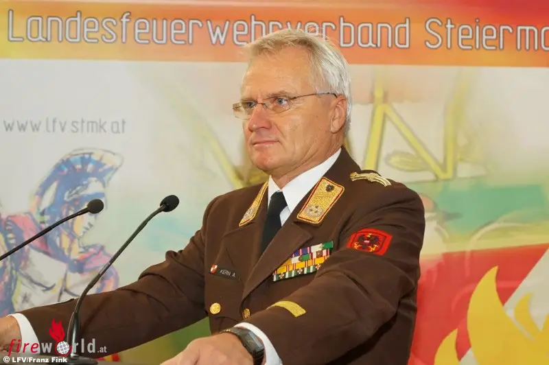 PRÄS Albert Kern präsentierte beim Empfang nicht nur die Bilanz, sondern ging in seiner Ansprache auch auf weitere Themen ein. Im Besonderen auf das Projekt Gemeinsam.Sicher.Feuerwehr. „In enger Abstimmung mit dem Landesschulrat für Steiermark werden Lehr- und Lernunterlagen zur Brand– und Katastrophenerziehung in den Volksschulen aufgelegt. Der Roll-out über die Feuerwehren an die Schulen hat begonnen und wird in Kürze abgeschlossen sein. Mit diesem Projekt geht der Landesfeuerwehrverband eine nachhaltige Partnerschaft mit den Volksschulen in der ganzen Steiermark im Sinne der Brandschutzerziehung ein. Dies auch vor dem Hintergrund, Zukunft zu bewahren.