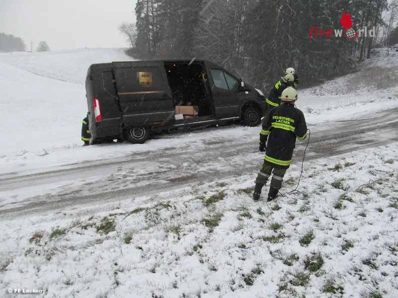 Das Fahrzeug eines Paketdienstes kam aufgrund der winterlichen Fahrverhältnisse von der Fahrbahn ab und drohte umzustürzen. Der Lenker wurde dabei unbestimmten Grades verletzt. Die Kameraden der Feuerwehr Lacken sicherten das Fahrzeug ab und zogen es mittels Seilwinde zurück auf die Straße. Die FF Lacken war mit 19 Mann vor Ort. Der Einsatz konnte nach rund einer Stunde wieder beendet werden.