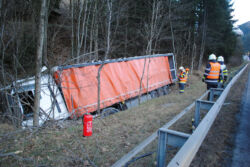 SANKT MICHAEL (STMK): Am 15. Jänner 2016 wurde die Freiwillige Feuerwehr St. Michael um 15.59 Uhr zu einem Verkehrsunfall auf die A9 alarmiert. Aus noch ungeklärter Ursache kam ein in Richtung Linz fahrenden Lkw ca. 500m nach der Tunnelausfahrt von der Fahrbahn ab und landete im Straßengraben. Der Lenker des Fahrzeugs wurde bei dem Unfall leicht verletzt.