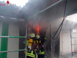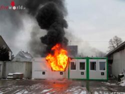 AUGSBURG (D): Am 16. Jänner 2016, kurz vor 16.00 Uhr, wurden die Berufsfeuerwehr Augsburg und die Freiwillige Feuerwehr Oberhausen zu einem Wohncontainerbrand in die Hirblinger Straße gerufen.