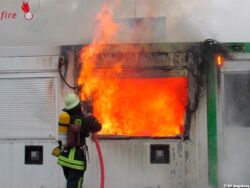 Eine Person im Container wurde von der Feuerwehr aus dem brennenden Container gerettet. Die Person wurde Brandverletzungen vom Notarzt/Rettungsdienst ins Krankenhaus gebracht. Weitere Personen waren nicht in Gefahr. Der Brand drohte auf die angrenzenden Container überzugreifen. Die Zuleitung zum Flüssigkeitstank sowie die Stromversorgung wurden abgesperrt. Der Brand konnte mit zwei C-Druckluftschaumrohren gelöscht werden.