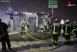 ALSFELD (DEUTSCHLAND): Die Selbstbedienungsfiliale eines Alsfelder Geldinstitutes in der Grünbergerstraße wurde am frühen Sonntagmorgen, 17. Jänner 2016, durch eine Explosion völlig zerstört. Nach ersten Polizeiangaben sprengten Unbekannte einen Geldautomaten in die Luft. Durch die Detonation geriet augenscheinlich das komplette Gebäude in Brand.