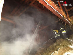 Im Brand standen neben einem Vorbau, in dem Holz gelagert wurde, auch das Heulager. Gleichzeitig wurde mit dem Aufbau der Zubringerleitungen vom nahe gelegenen Löschteich sowie einem weiterem Teich begonnen. Um weitere Atemschutztrupps zur Verfügung zu haben, wurden die Feuerwehren Aigen, Ödenkirchen und Julbach nachalarmiert. Zusätzlich wurde die Drehleiter Rohrbach von Einsatzleiter BR Gierlinger Günther alarmiert, um auch über das Dach Lösch- und Sicherungsarbeiten durchzuführen. Durch das rasche Eingreifen der Feuerwehren konnte ein Übergreifen der Flammen auf den Stall, sowie das Wohngebäude verhindert werden. Die Schafe konnten aufgrund einer Überdruckbelüftung im Stall verbleiben.