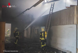 Um mit der Brandbekämpfung beginnen zu können, musste die leerstehende Halle an mehreren Stellen aufgebrochen werden. Dazu kam unter Anderem ein Trennschleifer zum Einsatz, mit dem kurzerhand Teile der Außenwand aus Metall entfernt wurden. Anschließend konnten zwei Trupps, geschützt durch Atemschutzgeräte, in die stark verqualmte Halle vorgehen. Im Inneren fanden die Einsatzkräfte insgesamt vier Brandstellen vor.