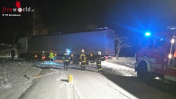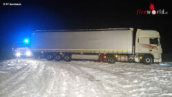 Während der Bergung wurde auch die Straßenmeisterei verständigt, die die verschneite Straße zuerst räumte und auch Kies streute um die spiegelglatte Fahrbahn zu entschärfen. Anschließend wurde die Zugmaschine an die Seilwinde gehängt und so der Lkw auf zurück auf die Straße gezogen. Das Gespann konnte nach ca. 2 Stunden seine Fahrt unbeschadet fortsetzen.