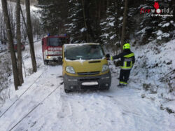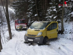 PAYERBACH (NÖ): Am Vormittag des 18. Jänner 2016 wurde die FF Payebach zu einer Fahrzeug-Bergung in den Payerbachgraben alarmiert. Ein Handwerker wollte mit seinem Kastenwagen zur Baustelle fahren und ist bei der steilen Zufahrt von der Fahrbahn abgekommen und in ein Gerinne gerutscht.