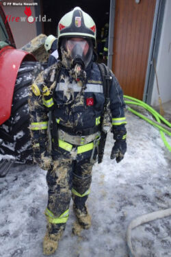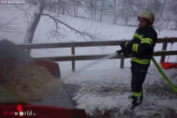 Oö: Tiefwinterliche Autobergung sowie langwieriger Silobrand in Maria Neustift