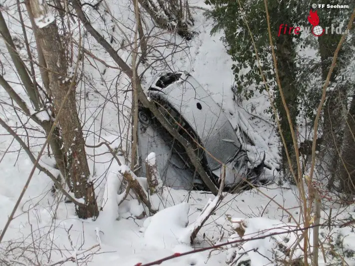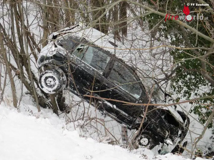 Ebenfalls aufgrund der schneeglatten Fahrbahn kam wenige Stunden später gegen 08:45 Uhr ein Fahrzeuglenker von der Fahrbahn ab und landete mit seinem PKW im angrenzenden Bach. Durch die unwegsame Lage konnte das schwer beschädigte Fahrzeug nur durch ein Abschleppunternehmen mittels Kran geborgen werden. Dieses Fahrzeug war nicht mehr fahrbereit und musste abgeschleppt werden. Auch bei diesem Einsatz kam keine Person zu Schaden.