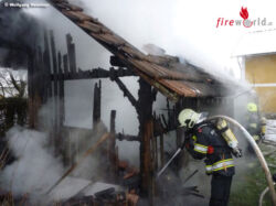 Beim Eintreffen der Feuerwehr Alkoven im Einsatzobjekt in Gstocket wurde ein bereits in Brand stehende, neben einem Bauernhaus situierte Holzhütte vorgefunden. "Ein Teil des Daches war bereits eingestürzt. Zwei Atemschutztrupps nahmen mit jeweils einem C-Rohr zwei Außenangriffe vor und konnten die Flammen auf diese Weise rasch eindämmen", schildert Einsatzleiter Wolfgang Beisl die Ausgangslage.
