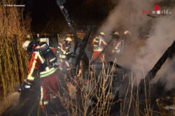 BRUCHSAL (DEUTSCHLAND): Mit dem Alarmstichwort „Feuerschein“ wurde am Donnerstagmorgen, 21. Jänner 2016, um 4.29 Uhr die Feuerwehr Bruchsal mit den Abteilungen Heidelsheim, Helmsheim und Bruchsal in die Gänsgärten bei der Tennisanlage gerufen. Beim Eintreffen der Feuerwehr stand eine Gartenhütte mit etwa 20 m² bereits im Vollbrand.