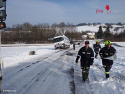 Grund dafür war ein Sattelzug der von einem steilen Straßenstück abrutschte und seitlich im Straßengraben zu stehen kam. Unter Zuhilfenahme der zwei Seilwinden von HLF 2 Rohrbach und RLFA Weistrach konnte der ca. 16 Tonnen schwere LKW wieder auf die Straße gezogen werden.