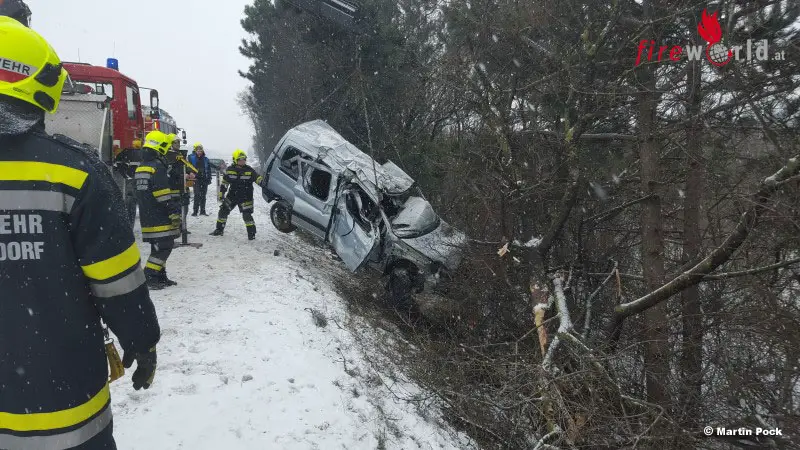 Die Lenkerin war in dem massiv deformierten Fahrzeug eingeklemmt jedoch ansprechbar. Aufgrund der starken Vegetation musste für einen sicheren Zugang eine Schneise mit einer Kettensäge freigeschnitten werden. Während dieser Tätigkeit wurde die Patientin von den Sanitätern der Feuerwehr Leobersdorf sowie vom Roten Kreuz betreut. Anschließend wurde, um die Patientin aus dem Fahrzeug zu befreien, die Fahrertüre sowie die B-Säule entfernt. Des Weiteren musste mit einem Rettungszylinder das Dach des Fahrzeuges angehoben werden.