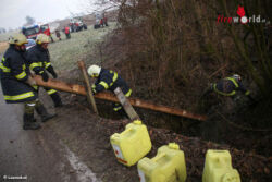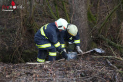 Im Bereich der Unfallstelle war die Fahrbahn glatt, die Lenkerin verlor die Kontrolle über ihr Fahrzeug, druchbrach das hölzene Brückengeländer und stürzte mit dem Auto in das Bachbett. Das Fahrzeug kam seitlich an einem Baum zum Liegen. Die Lenkerin konnte sich offensichtlich unverletzt aus dem Unfallfahrzeug befreien. Die Feuerwehr führte die Aufräumarbeiten nach dem Verkehrsunfall durch. Mit einem Traktor wurde das Fahrzeug aus dem Bachbett gezogen. Fahrzeugteile wurden aus dem Bachbett entfernt und ausgelaufene Betriebsmittel gebunden.