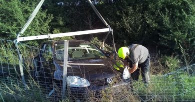 Im Bereich der Unfallstelle war die Fahrbahn glatt, die Lenkerin verlor die Kontrolle über ihr Fahrzeug, druchbrach das hölzene Brückengeländer und stürzte mit dem Auto in das Bachbett. Das Fahrzeug kam seitlich an einem Baum zum Liegen. Die Lenkerin konnte sich offensichtlich unverletzt aus dem Unfallfahrzeug befreien. Die Feuerwehr führte die Aufräumarbeiten nach dem Verkehrsunfall durch. Mit einem Traktor wurde das Fahrzeug aus dem Bachbett gezogen. Fahrzeugteile wurden aus dem Bachbett entfernt und ausgelaufene Betriebsmittel gebunden.