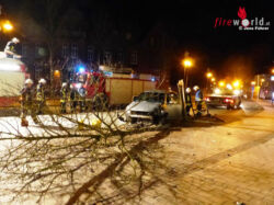 WALSRODE, HEIDEKREIS (DEUTSCHLAND): Die Freiwillige Feuerwehr Walsrode wurde um 04:16 Uhr des 29. Jänner 2016 zu einem Verkehrsunfall am Kirchplatz alarmiert. Dort war ein Pkw von der Straße abgekommen und war gegen einen Baum geprallt.