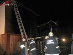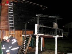 Beim Eintreffen der Feuerwehr stand ein Kinderspielhaus im Vollbrand. Auch die Holzverschalung des Wohnhauszubaus neben dem Kinderspielhaus stand in Brand. Durch einen beidseitigen Löschangriff konnte ein weiteres Übergreifen der Flammen auf den Wohnhauszubau verhindert werden.