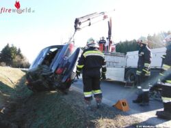 WAIDHOFEN AN DER THAYA (NÖ): Am 30. Jänner 2016, um 9.35 Uhr, forderte die Feuerwehr Puch das Lastfahrzeug der Freiw. Feuerwehr Waidhofen an der Thaya zur Unterstützung bei einer Fahrzeugbergung an. Nach einem Verkehrsunfall landete ein Pkw auf dem Dach und musste geborgen werden.