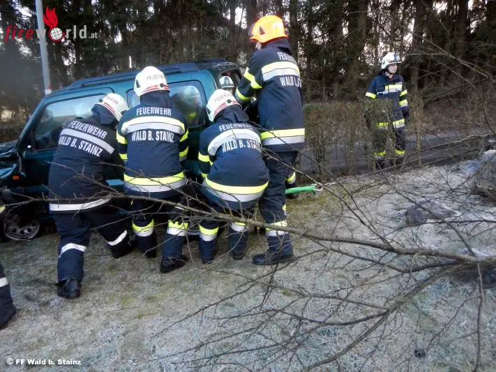 STAINZ (STMK): Am 30.01.2016 wurden die Feuerwehren Wald bei Stainz, St. Stefan und Gundersdorf zu einem Verkehrsunfall in Marhof alarmiert. Ein Pkw war von der Straße abgekommen und hatte einen Zaun und eine Hecke durchstoßen.