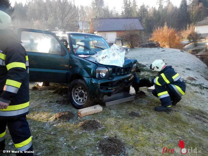 Das Fahrzeug kam anschließend in Seitlage zum Stillstand. Zwei Personen wurden verletzt, wobei eine Person von der Feuerwehr befreit werden musste. Durch den enstandenen Fahrzeugschaden trat auch Öl aus, welches beim Einlauf in den Stainzbach von der Feuerwehr gebunden wurde. Eine Verschmutzung des Stainzbaches konnte verhindert werden.