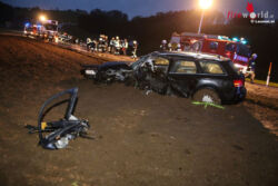 Laut ersten Informationen wurden drei Personen teilweise schwer verletzt. Zwei Feuerwehren, das Team des ÖAMTC Notarzthubschraubers Christophorus 10 sowie zwei weitere Ärzte und die Polizei standen im Einsatz. Die Unfallfahrzeuge wurden nach dem Zusammenstoß in die angrenzenden Felder geschleudert und kamen dort schwer beschädigt zum Stillstand.