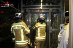 VÖSENDORF (NÖ): Am 03.02.2016 um 21:06 Uhr wurde die Feuerwehr Vösendorf mittels Pager und Alarm – SMS zu einem technischen Einsatz (Personen in Aufzug) alarmiert. Über Funk wurde von der BAWZ Mödling noch vor dem Ausrücken mitgeteilt, dass sich zwei Personen schon über eine Stunde im Aufzug befanden und situationsbedingt leicht panisch reagieren. Deshalb wurde ebenfalls die Polizei und Rettung verständigt.